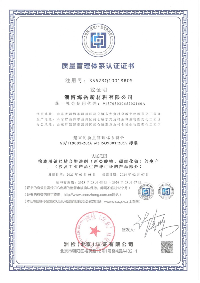 新癸酸鈷、硼?;?、橡膠鈷鹽粘合劑找:淄博海岳新材料有限公司
